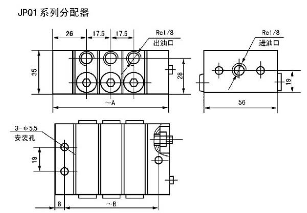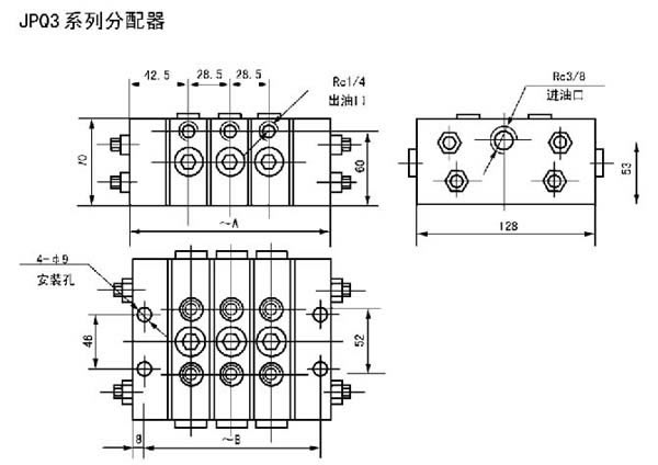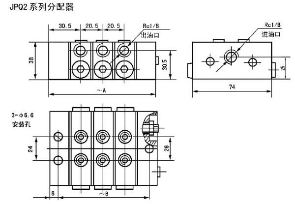 JPQ系列递进分配器是由中碳合金结构钢制造的首片、尾片和3~8片根据设计需要给油量和出油口数的中间体组合而成。