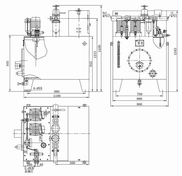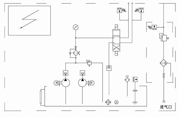 | 该站主要由油箱(带电加热器、液位计、电接点温度计、空气滤清器、液位控制器)、两台高压油泵装置(一备一用)、溢流阀、电磁阀、过滤器、压力控制器以及气动三联件和PLC电气控制柜等组成。在电动机的牵引下油泵工作,从油箱内吸入润滑油加压排出,途径单向阀、过滤器和三位四通电磁阀后向双线系统管线供送。正常工作时,一台高压油泵常开工作,另一台备用,可通过电气转换开关来选择使用,并可通过按钮开关人工启动和停止油泵。PLC电气控制箱对油气系统实行程序化全自动控制,还可向主控室提供系统“运行”、“停止”、“故障”等远程信号接口。 |