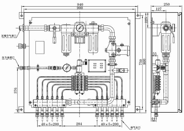 | 油气卫星站由二位二通电动止回阀、KM型单线油分配器、气动三联件、二位二通气动电磁阀、油气混合器以及各种连接件等组成。润滑油供应站供送过来的压力油,经二位二通电动止回阀、KM型单线油分配器定量分配,分配出的若干份油分别送至各口的油气混合器进行油气充分混合,而后分别向后级的油气分流器进行再分流或直接供向润滑点。卫星站的工作控制接受油气润滑系统的主PLC电气控制箱控制。 |